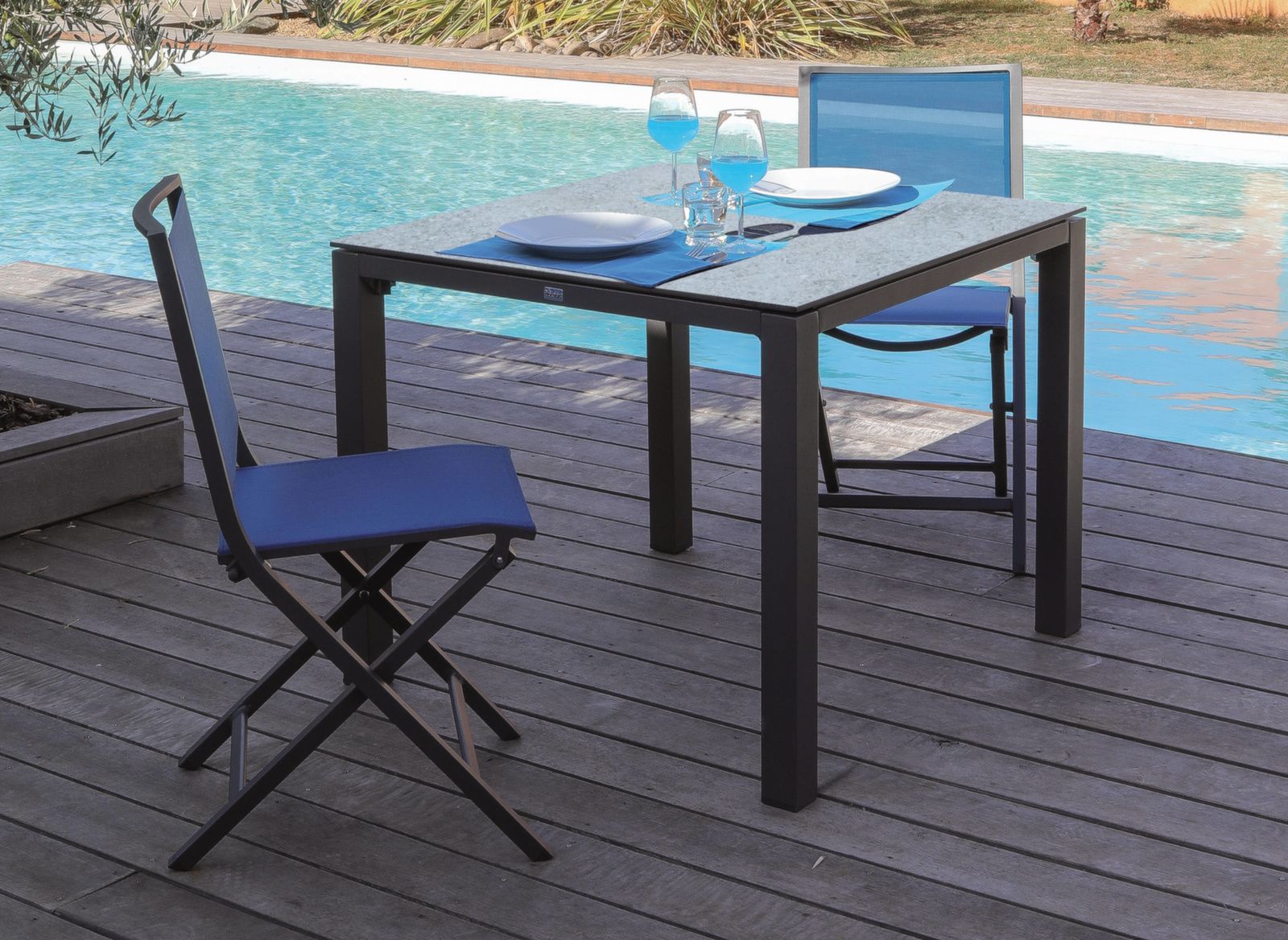 Son style très épuré vous permettra de l'accorder avec tous types de mobilier. Résistante et stable, sa structure en aluminium possède une finition en époxy qui la protège des rayons UV et des intempéries. La chaise pliante IDA peut résister à un environnement côtier.